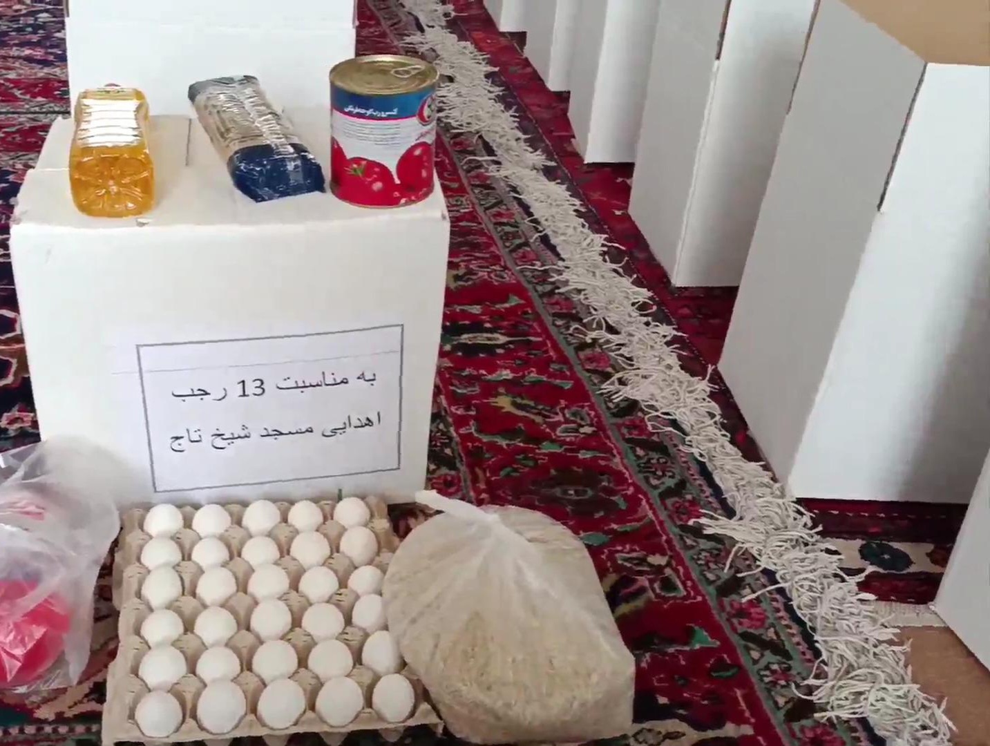 در این اقدام نیکوکارانه به همت هیئت امنای مسجد شیخ تاج مراغه ۴۰ بسته معیشتی به مناسبت ۱۳ رجب برای خانوادههای نیازمند این شهرستان توزیع شد.